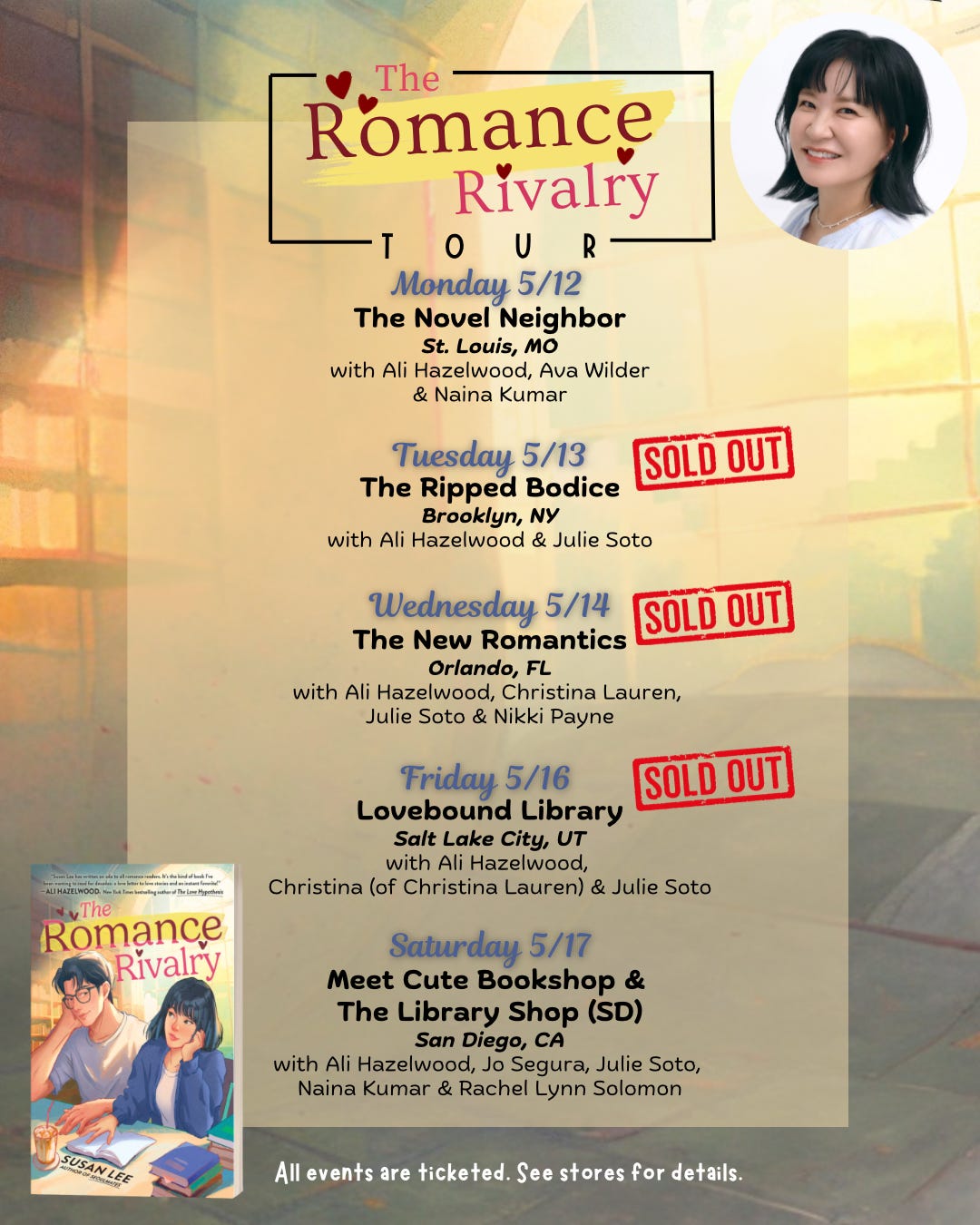 We announced THE ROMANCE RIVALRY release week tour. And more than anything, I’m just so excited to be able to travel around with my friends, visiting romance book stores, and seeing all the readers! I was humbled and amazed at how quickly some of the venues sold out. Thank you so much for the enthusiasm and support!